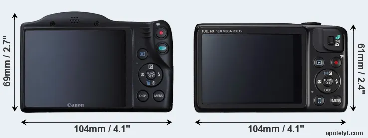 | 1. | Canon SX410 | 104 mm | 69 mm | 85 mm | 325 g | 185 | n | feb 2015 | US$ 279 | ebay.com | |