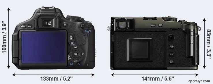 La Canon EOS Rebel T3i e la Fujifilm X-Pro3 sono due fotocamere digitali rivelate al pubblico rispettivamente a febbraio 2011 e ottobre 2019. Il T3i è una fotocamera DSLR, mentre X-Pro3 è una fotocamera mirrorless con obiettivo intercambiabile.Entrambe le fotocamere sono dotati di un sensore APS-C. La Canon ha una risoluzione di 17,9 megapixel, mentre la Fujifilm fornisce 26,0 MP.