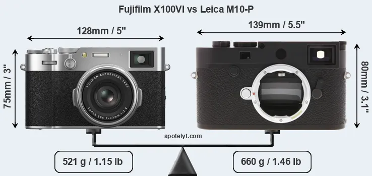 Size Fujifilm X100VI vs Leica M10-P