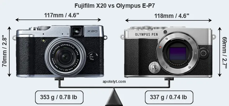 Size Fujifilm X20 vs Olympus E-P7