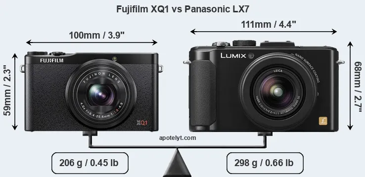 La Fujifilm XQ1 e la Panasonic Lumix DMC-LX7 sono due fotocamere digitali rivelate al pubblico rispettivamente a ottobre 2013 e luglio 2012. Sia il XQ1 e il LX7 sono fotocamere compatte con obiettivo integrato, che sono dotati di un sensore da 2/3 pollice (XQ1) e un sensore da 1/1,7 pollice (LX7). La Fujifilm ha una risoluzione di 12,0 megapixel, mentre la Panasonic fornisce 10,0 MP.