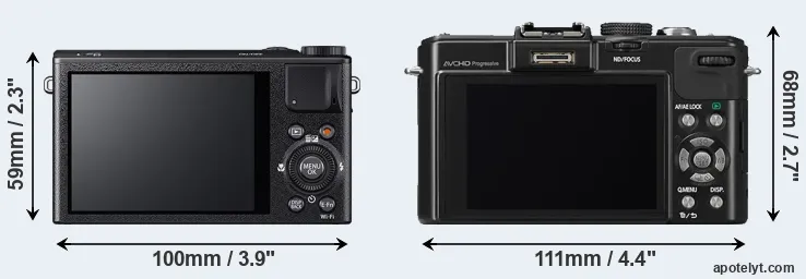 La dimensione fisica e il peso della Fujifilm XQ1 e Panasonic LX7 sono illustrate nel grafico sottostante. Le due fotocamere vengono visualizzate in base alle loro dimensioni relative. Tutte le dimensioni sono arrotondate al millimetro più vicino.