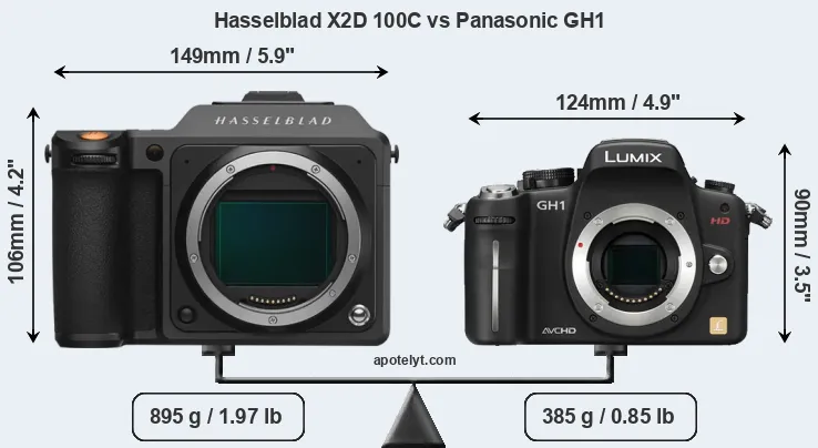 Size Hasselblad X2D 100C vs Panasonic GH1