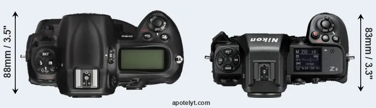| 2. | Nikon Z8 | 144 mm | 119 mm | 83 mm | 910 g | 340 | Y | mag 2023 | US$ 3 999 | amazon.com | |