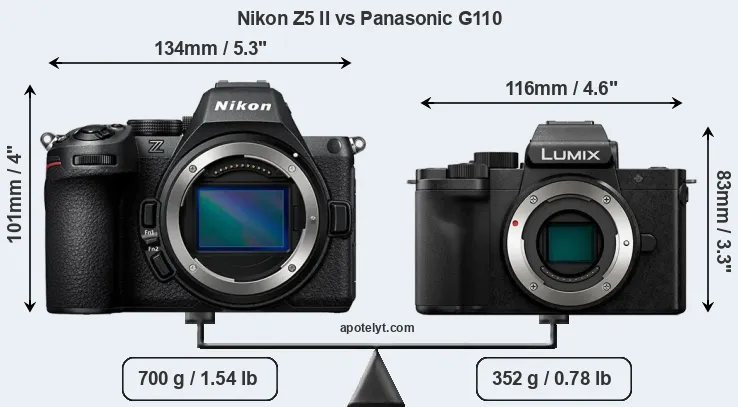 La Nikon Z5 II e la Panasonic Lumix DC-G110 sono due fotocamere digitali rivelate al pubblico rispettivamente a aprile 2025 e giugno 2020. Entrambe sono fotocamera mirrorless con obiettivo intercambiabile, che sono dotati di un sensore full frame (Z5 II) e un sensore Quattro Terzi (G110). La Nikon ha una risoluzione di 24,4 megapixel, mentre la Panasonic fornisce 20,2 MP.
