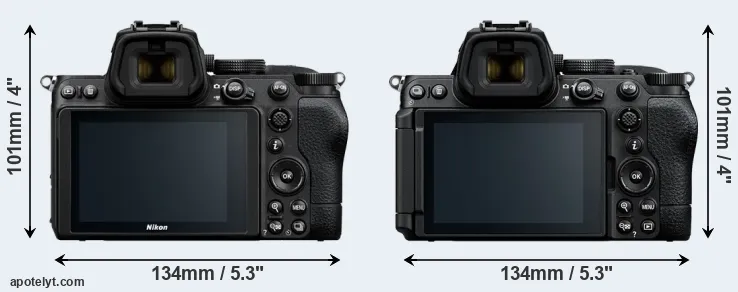 La dimensione fisica e il peso della Nikon Z5 e Nikon Z5 II sono illustrate nel grafico sottostante. Le due fotocamere vengono visualizzate in base alle loro dimensioni relative. Tutte le dimensioni sono arrotondate al millimetro più vicino.