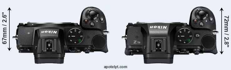 | 2. | Nikon Z5 II | 134 mm | 101 mm | 72 mm | 700 g | 330 | Y | apr 2025 | US$ 1 699 | amazon.com | |