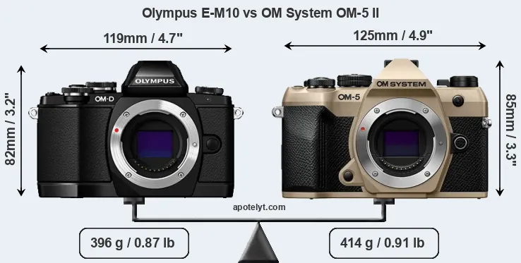 La Olympus OM-D E-M10 e la OM System OM-5 II sono due fotocamere digitali rivelate al pubblico rispettivamente a gennaio 2014 e giugno 2025. Entrambe sono fotocamera mirrorless con obiettivo intercambiabile, che sono dotati di un sensore Quattro Terzi. La Olympus ha una risoluzione di 15,9 megapixel, mentre la OM System fornisce 20,2 MP.