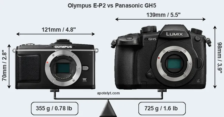 La Olympus PEN E-P2 e la Panasonic Lumix DC-GH5 sono due fotocamere digitali rivelate al pubblico rispettivamente a novembre 2009 e gennaio 2017. Entrambe sono fotocamera mirrorless con obiettivo intercambiabile, che sono dotati di un sensore Quattro Terzi. La Olympus ha una risoluzione di 12,2 megapixel, mentre la Panasonic fornisce 20,2 MP.