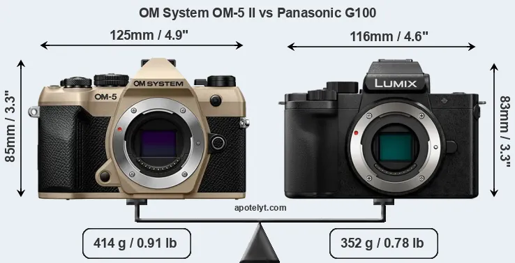 Size OM System OM-5 II vs Panasonic G100